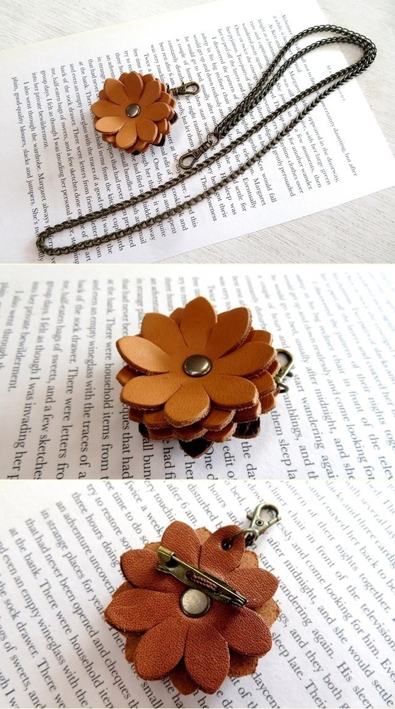 今回は、ヌメ革4枚、土台革1枚を重ね、ボリュームのある花にしました。