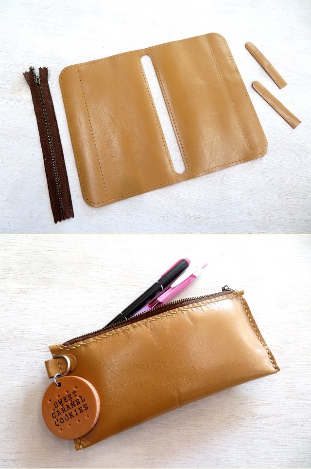 ファスナー使いのポーチの抜型を使い、ペンケースを作りました。
