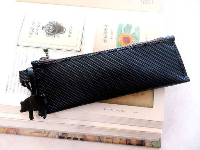 ハードタイプのドットの型押し牛革を使い、ペンケースを作りました。