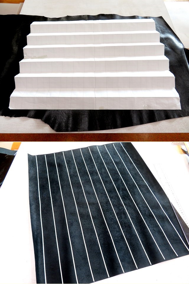 5センチ幅で蛇腹に縫うため、裏面に両面テープを貼りました。