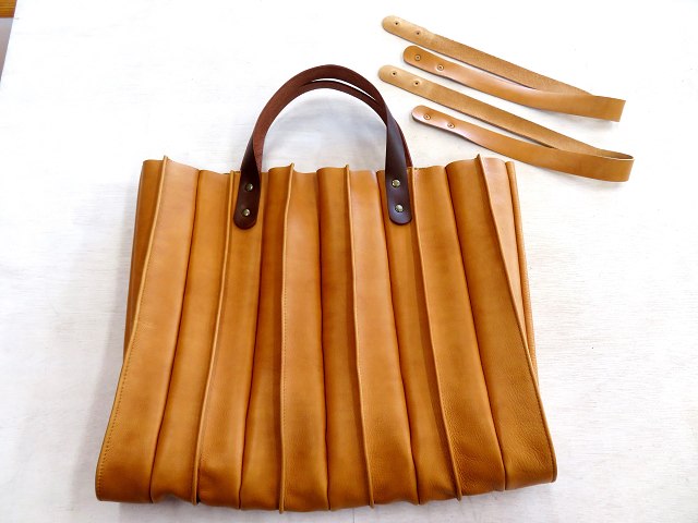 昨日のバッグに気を良くして、以前作ったシュリンクレザーの蛇腹折りバッグの持ち手を替えることにしました。