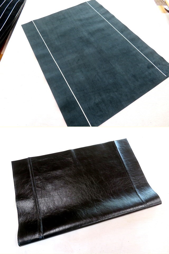 蛇腹折りバッグ同様に山折りする箇所の裏面に両面テープを貼ります。(画像上)