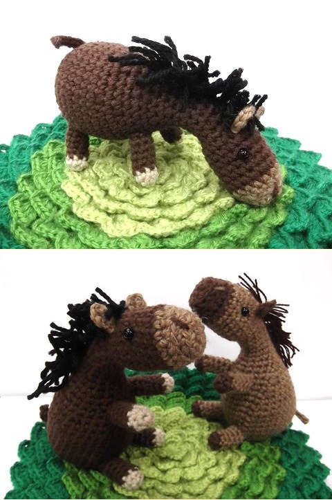 この編み図に少しアレンジを加え、並太毛糸を二本取りにして、大きめのずんぐりウマを編んでみたいと思います。