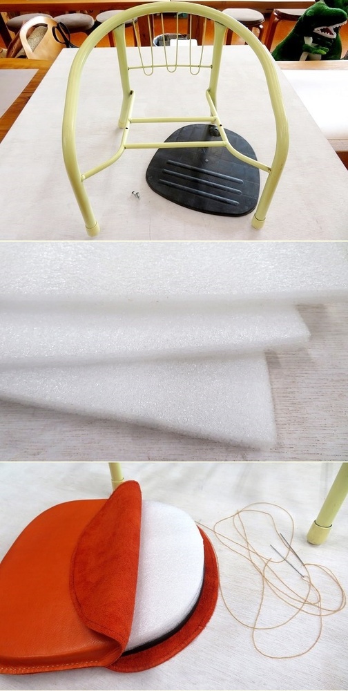 座面には、厚さ1cmのクッション材を二枚重ね合わせたものを入れます。