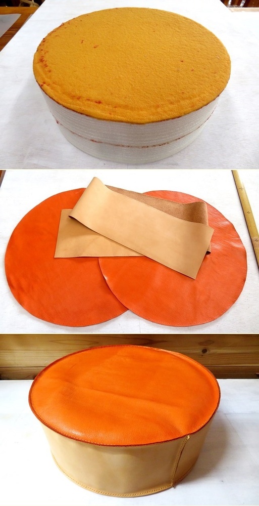 上下の円と側面の目数(菱目打ちで開けた穴)を合わせるため、何度も数えるのは面倒でしたけど、ピッタリ合うと美しい仕上がりに。