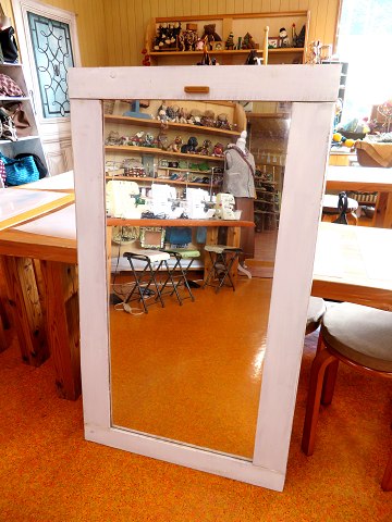 お店の什器の背板として使われていたアクリル板にフレームを付け、鏡にしたものです。