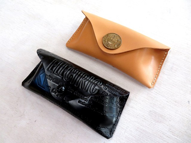 ヌメ革と、英字の型押し黒牛革を使用したもの、2種作りました。