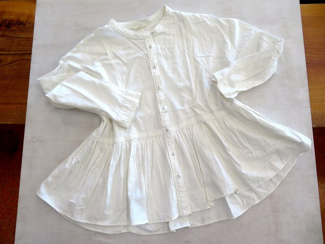 オフホワイトのわりと厚地のブラウス。