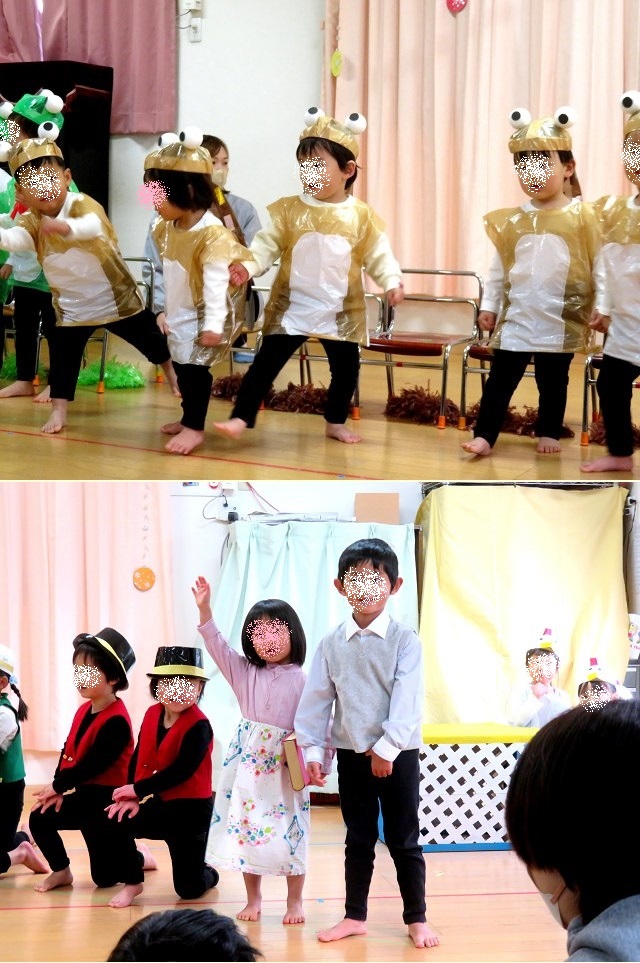 マイは『じゅっぴきのかえる』、メイは『おしゃべりなたまごやき』というお話のオペレッタでした。