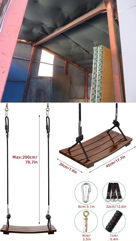 そこで、ブランコをぶら下げたらどうかと考えましてね、既製の木製ブランコをネットオーダーしてみました。(只今、到着待ち)