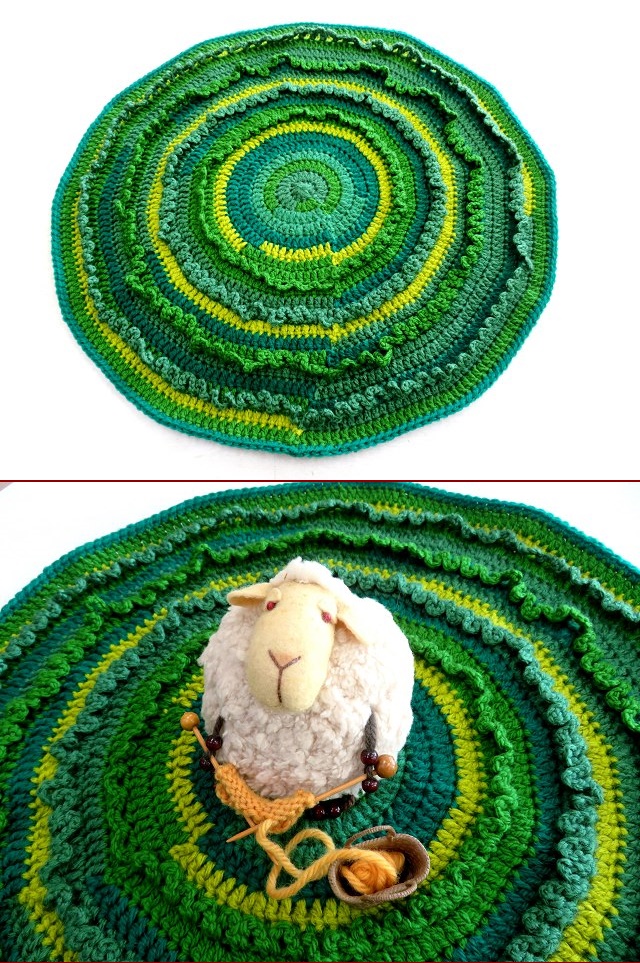 グリーン系の毛糸が余ると、草原を編むことにしています。