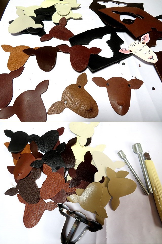どの素材の革にしようかな、何色にしようかな、と試作に意気揚々の私。