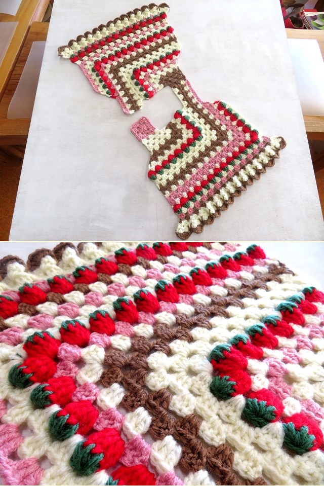 苺のケーキをモチーフにしたヒダ飾り付きのベストを作ってみました。