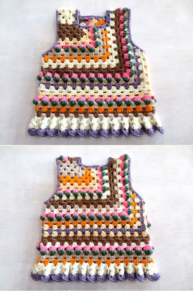 前回作った「赤い苺ケーキのベスト」もあれから袖ぐりに細編みを施しました。
