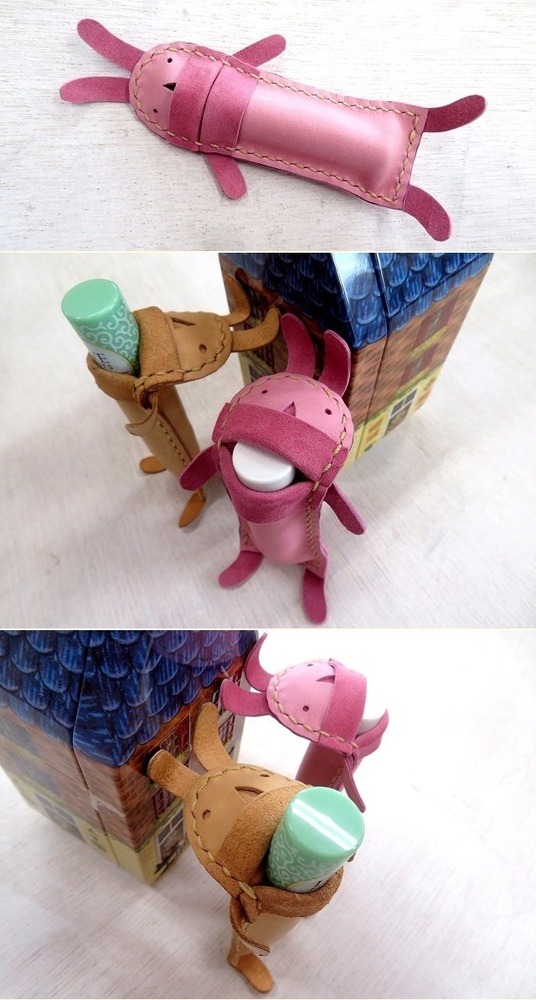 )に気を良くして、革でパクパクうさぎのリップケースを作りました。
