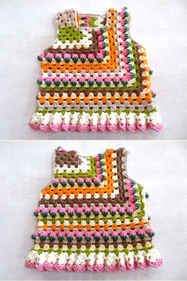 ピンクが大好きなマイのベストには、苺のムース(落ち着いた濃いピンク色)を裾飾りに使いました。