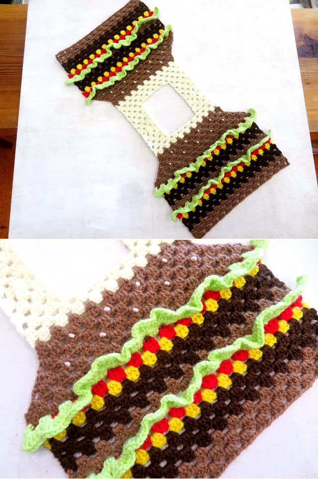 レタスしゃきしゃき、ハンバーガーベストを編んでみました。