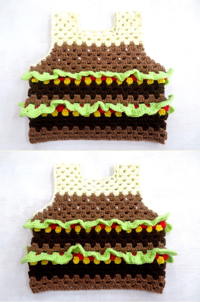 ハンバーガーはぴったり段を揃えて編みました。