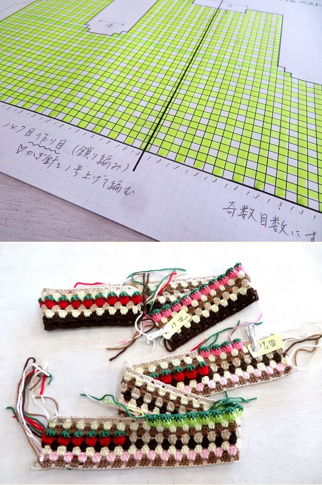 気を良くしたので、次は「苺」ベストのもう1パターンの前開きベストを作ってみようかな。