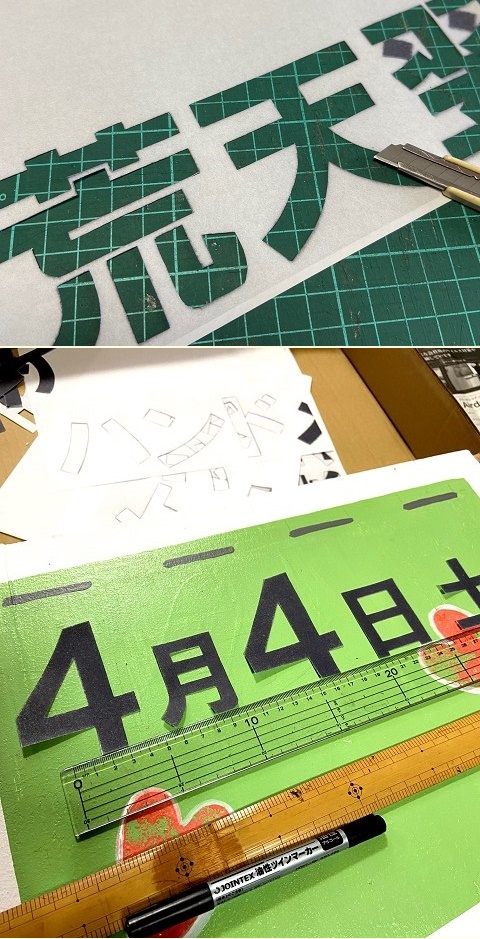 仕方なく、手間が掛かるのを覚悟で、文字を印刷して切り抜くことにしました。