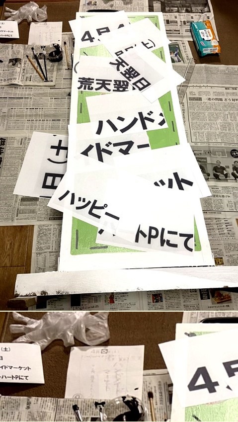 落ち込んだ後、頭を切り替え、文字をPCで作り、それを拡大したものを看板上に置きました。