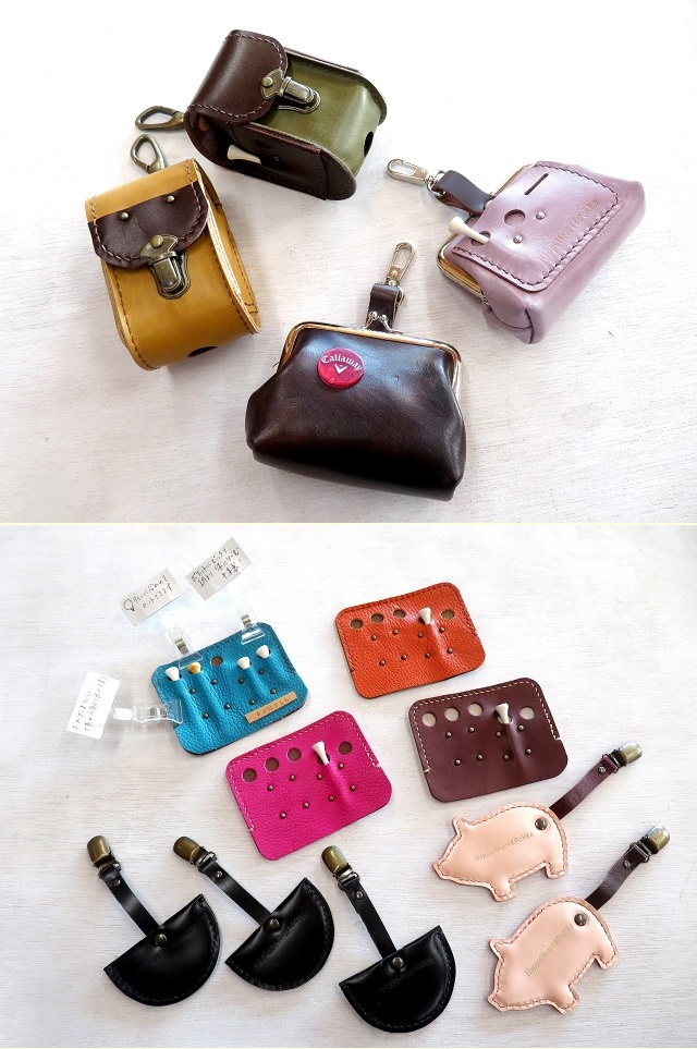 ゴルフボールケースやティーケースなど、可愛らしいフォルムのものを幾つか。