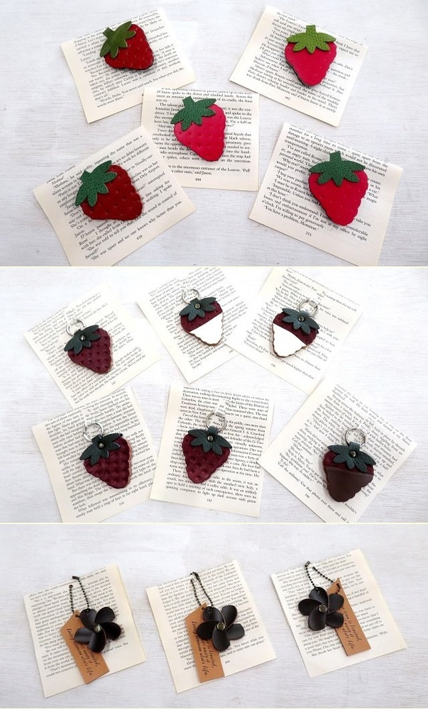 (価格:苺ブローチ500円・苺キーホルダー600円・花キーホルダー500円)