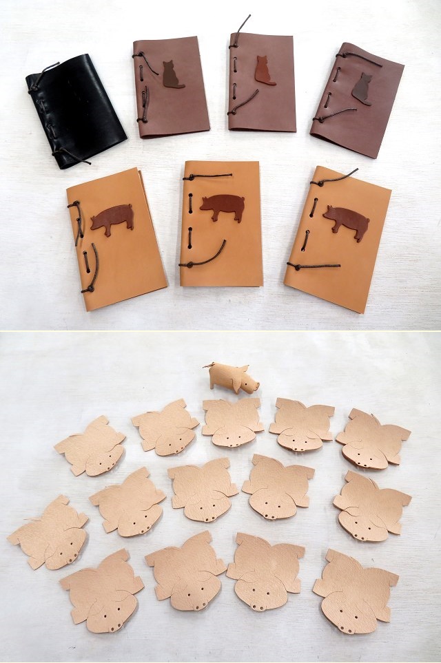 (価格:ヌメ革の手帳600円・豚ヌメ革製ブタさんキット300円)
