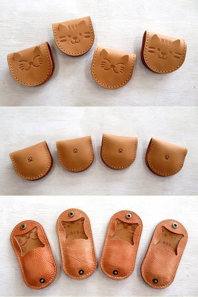 ヌメ革を使ったネコさんコインパース。