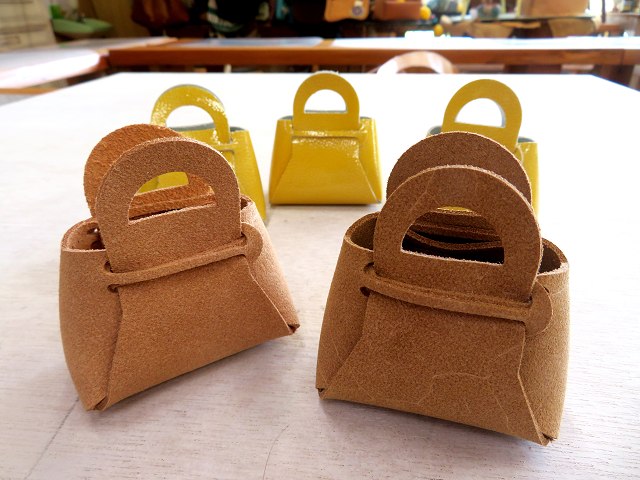 牛床革を使ったミニバッグです。(奥はエナメル革)